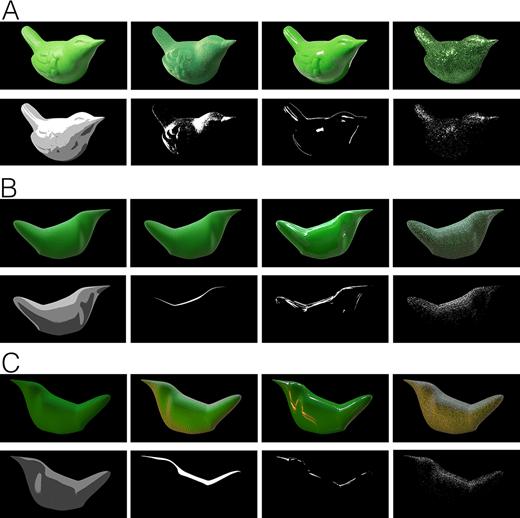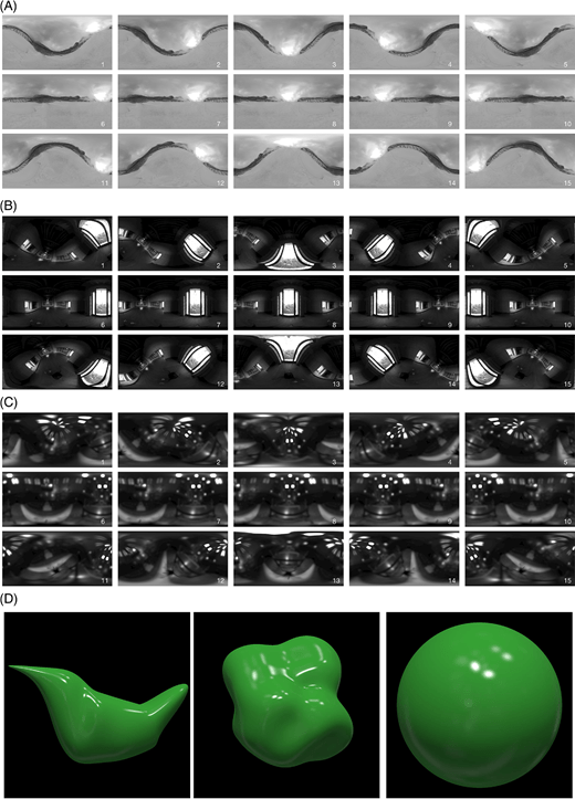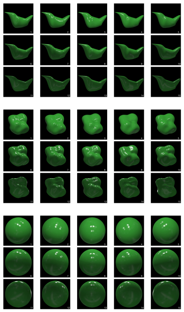 Example of three shapes, rendered with the specular material and the Grace-new light map in 15 orientations (Zhang et al., 2020)
